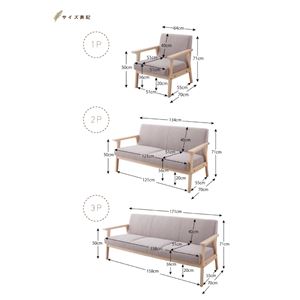 3P:約幅170×奥行77×高さ76cm(座面高40)cm