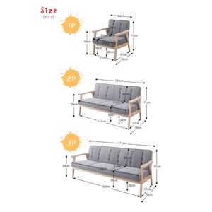 3人掛け:幅約175(座面幅161)×奥行75(座面奥行55)×高さ45(座面高14)cm