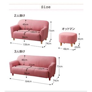3P:(約) 幅164(座面幅135)× 奥行74(座面奥行51)× 高さ73(座面高36)cm