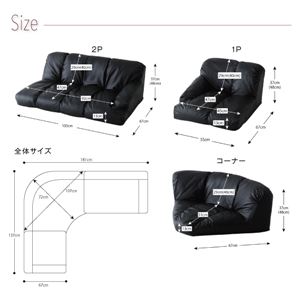 コーナー:幅約95×奥行75(座面奥行55)×高さ55(座面高15)cm
