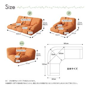 コーナー:幅約95×奥行75(座面奥行55)×高さ40(座面高15)cm