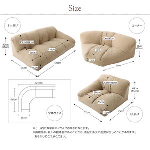 コーナー:幅約95×奥行75(座面奥行55)×高さ40(座面高15)cm