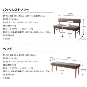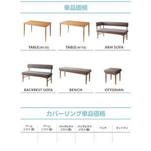 セット内容:ダイニングテーブル、アームソファ、バックレストソファ、ベンチ
