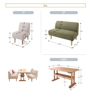 | サイズ | テーブルAセット「1P+2P+テーブル」 |