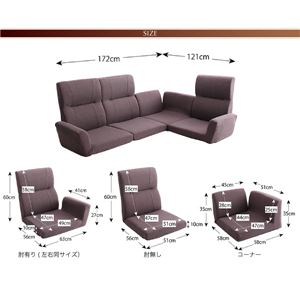 コーナー:幅(約)107×奥行72(座面奥行51)×高さ37(座面高13)cm