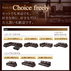 こちらは「ソファーセット 3人掛け【Luciano】肘なし ダークブラウン モジュールローソファ【Luciano】ルチアーノ【セット】」の商品ページです。商品画像や説明文には色違いやサイズ違いの商品情報が載っている場合がございますのでご確認ください。