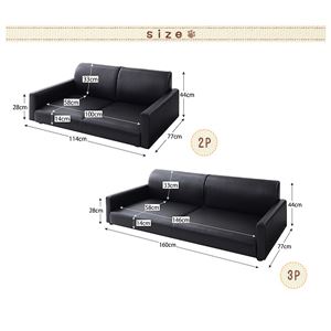 3人掛け:幅180(座面幅146)×奥行き83(座面奥行き55)×高さ77(座面高40)cm