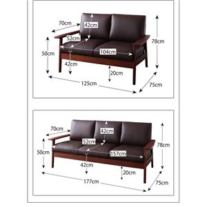 2.5人掛け:幅162(座面幅128)×奥行き83(座面奥行き55)×高さ77(座面高40)cm